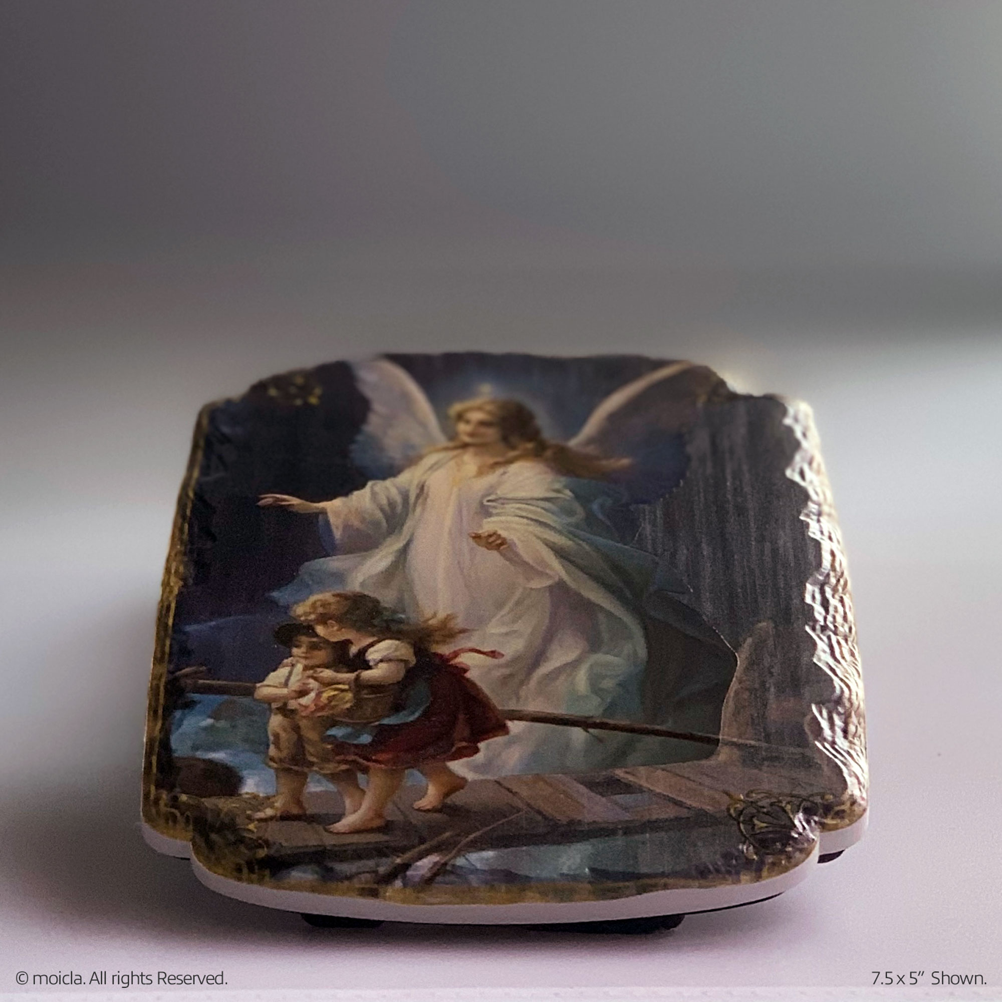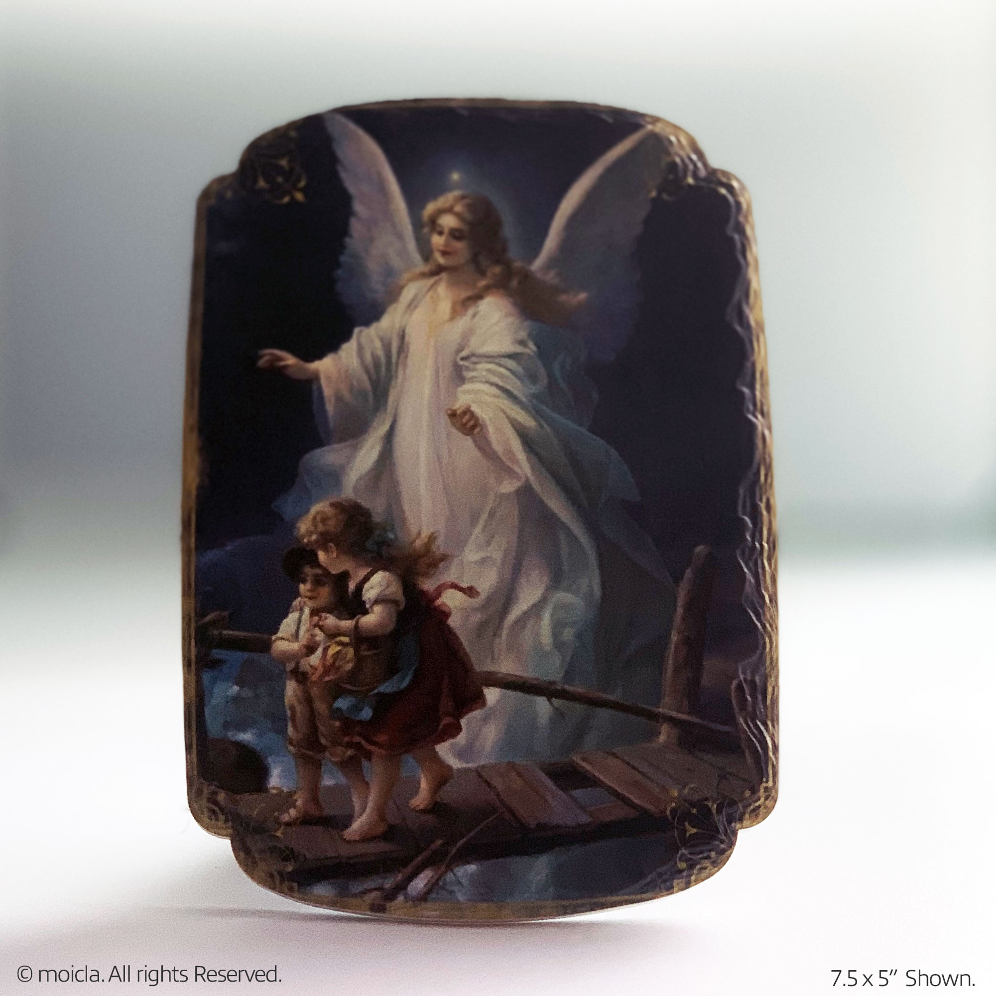 Enhance your home or church with this 7.5" Guardian Angel resin frame. Meticulously designed, it features intricate details that reflect your faith. Made from durable resin, it's an ideal gift for any Catholic occasion. This elegant wall decor is easy to hang, bringing a touch of divine protection and serenity to your space. Perfect for religious celebrations, it embodies both beauty and spiritual significance.